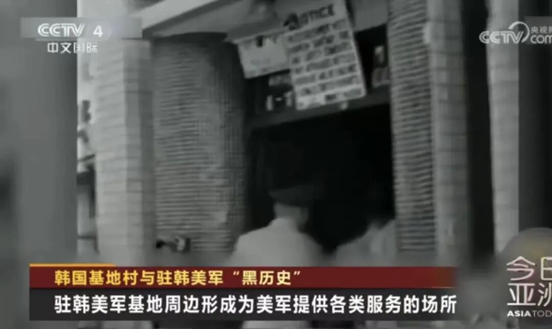 围绕美军基地形成各类服务场所 央视此前报道截图